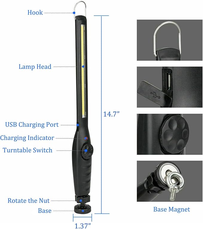 - قاعدة مغناطيسية تثبت المصباح بسهولة أثناء العمل